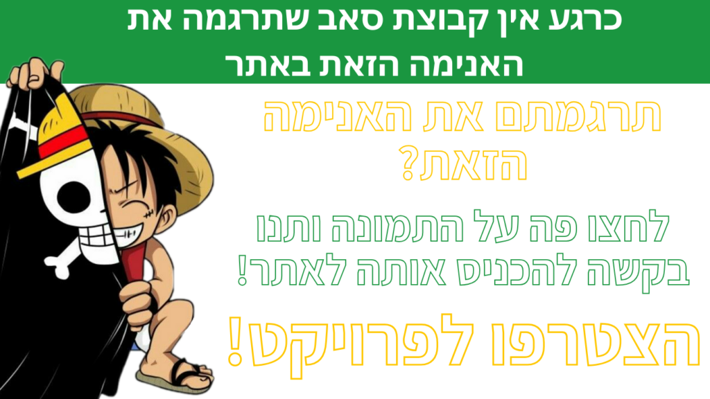 אתר זה הוא ללא מטרת רווח ואינו מאחסן קבצים בשרת שלו. כל הפרקים מסופקים על ידי צדדים שלישיים שאינם קשורים. אם תרצו שנסיר תוכן ספציפי או שיש פגיעה מסוימת, צרו איתנו קשר animeisraelweb@gmail.com ונענה לבקשה במהירות.